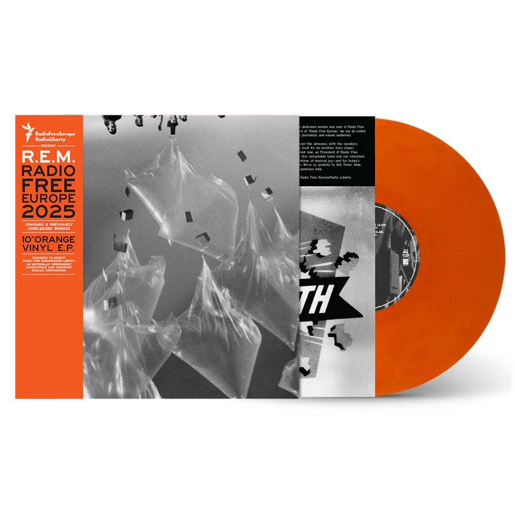 This limited-edition 10-inch EP revisits R.E.M.’s landmark debut single “Radio Free Europe,” led by a brand-new 2025 remix from Jacknife Lee. Completing the set are Mitch Easter’s original 1981 recordings – the sought-after Hib-Tone single mix of “Radio Free Europe,” its flipside “Sitting Still,” the “Wh. Tornado” demo, and Easter’s 1981 remix “Radio Free Dub” – all pressed on orange vinyl. Proceeds will benefit Radio Free Europe/Radio Liberty.