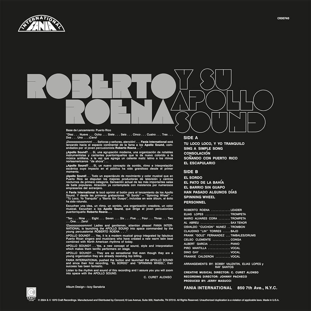 Celebrating Roberto Roena y Su Apollo Sound's first release for Fania Records in 1970. Founded in 1969, 'Apollo Sound' was considered one of the best salsa bands in Puerto Rico. Standout tracks include 'Tu Loco Loco, y Yo Tranquilo', 'El Escapulario' and the Bobby Capó classic 'Soñando con Puerto Rico'.