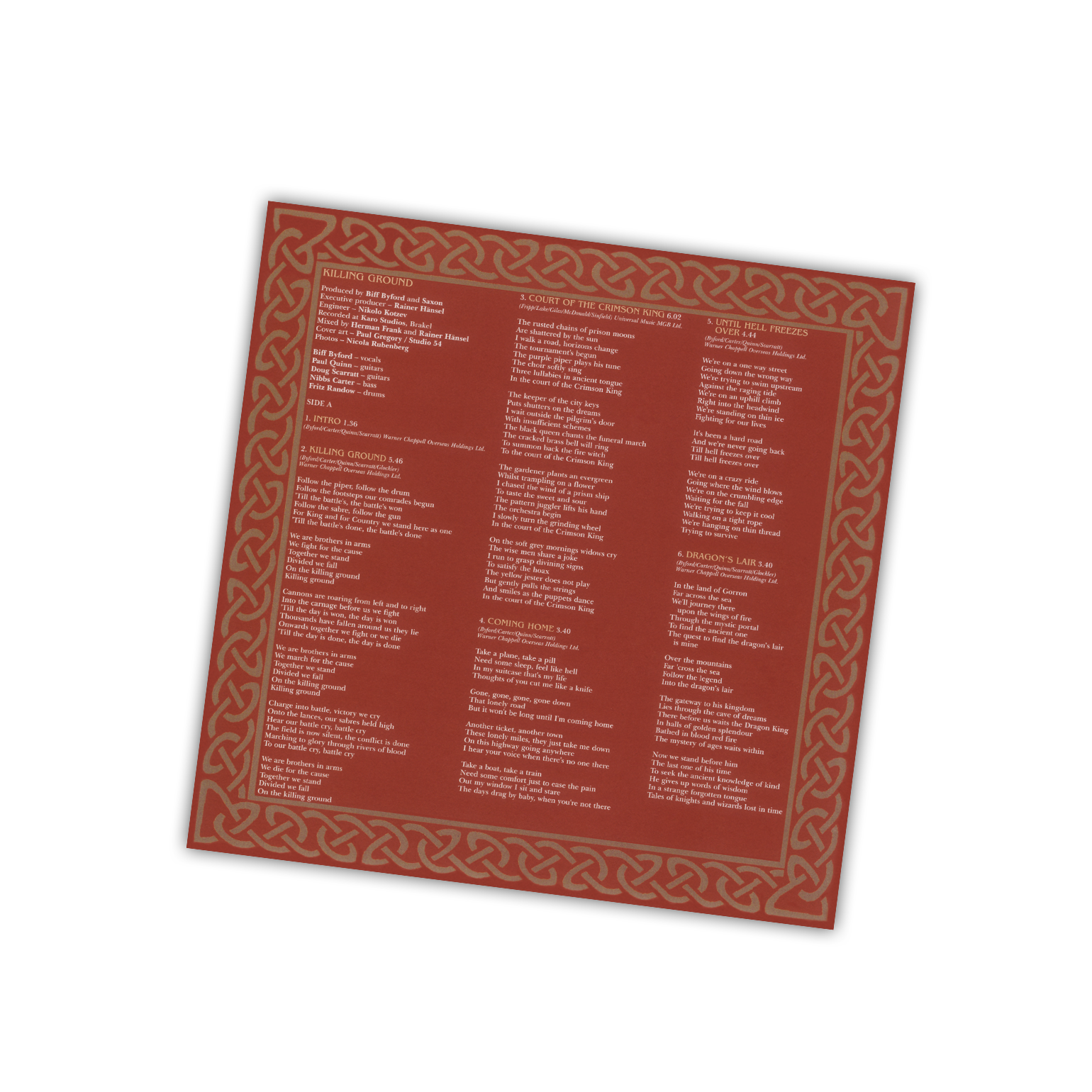 Killing Ground is the fifteenth studio album by British heavy metal band Saxon, recorded and released in 2001. It was the last to feature Firtz Randow on drums, as he left the band in 2004. The album was met with positive critique, praising Saxon’s heavy sound, catchy lyrics and their fantastic cover version of King Crimson’s classic hit “Court Of The Crimson King”.