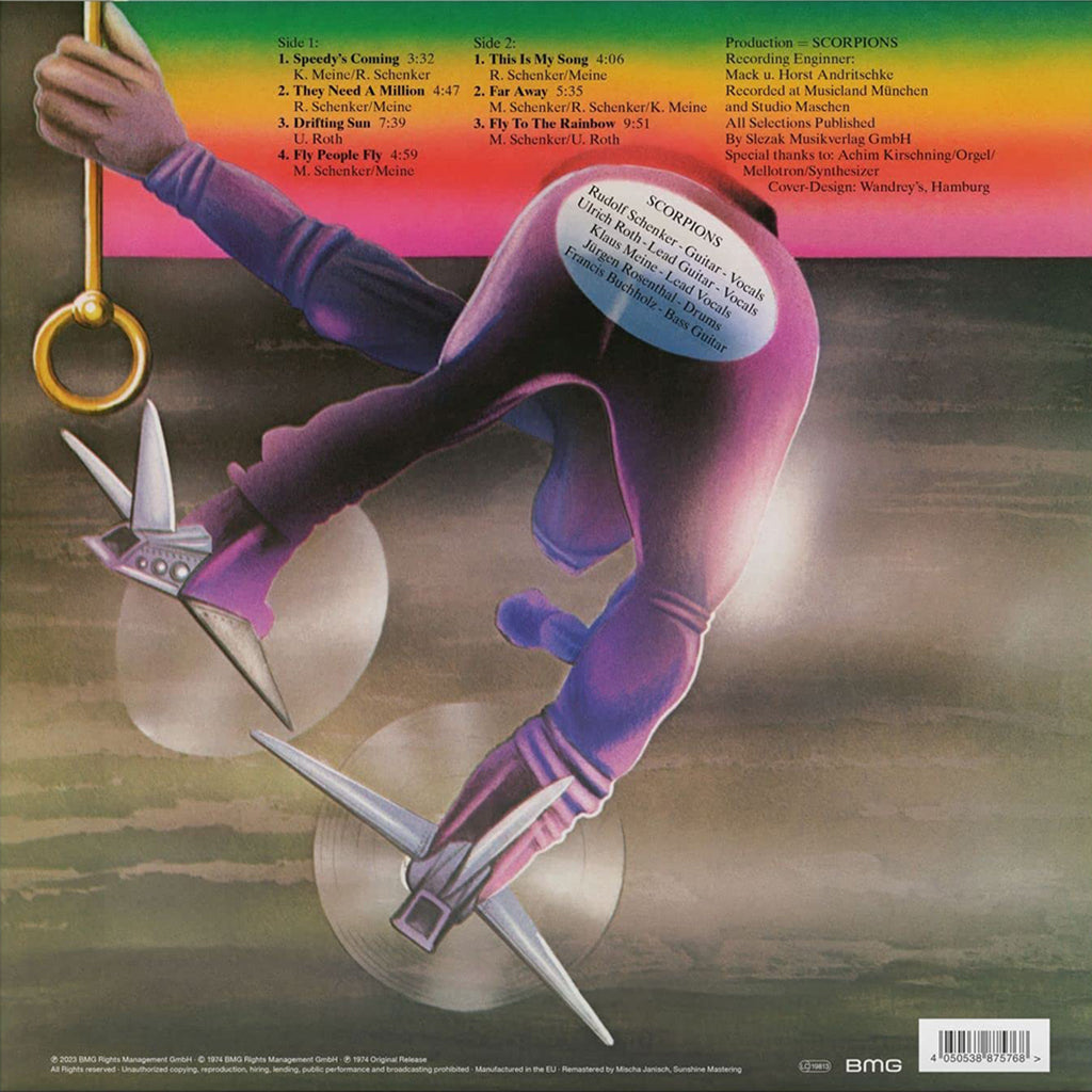 The Scorpions' second studio album, Fly to the Rainbow, was released on 01 November 1974 and is the first album produced by the members of the band themselves. The album was produced shortly after their Lonesome Crow tour, after which Michael Schenker left the band and was replaced by Uli Jon Roth. Stylistically, Fly to the Rainbow deviated strongly from their debut album Lonesome Crow and moved in a more experimental direction, which nevertheless already showed strong hard rock influences at that time and already foreshadowed where the band would later go. Besides lead singer Klaus Meine, the album also features the voices of Rudolf Schenker ("They Need a Million") and Uli Jon Roth ("Drifting Sun"). To date, the album has sold more than a million copies worldwide.
