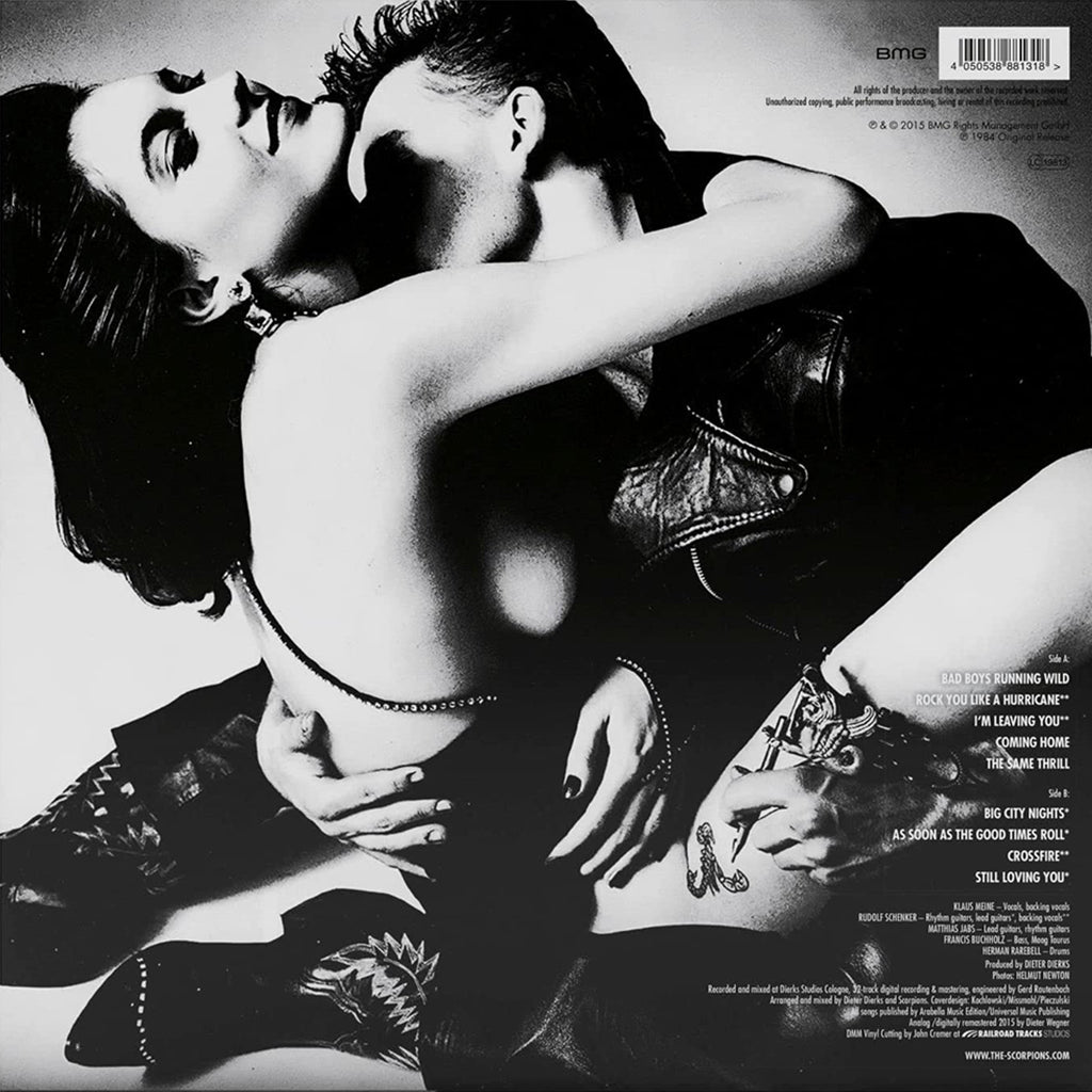 After the great success of Blackout and tours through Europe, Asia and America, the Scorpions went into the studio in spring 1983 to start recording Love at First Sting. The goal from the beginning was to top the success of Blackout. They succeeded, because Love at First Sting became the most successful album in the band's long career and produced classics like "Still Loving You", "Rock You Like A Hurricane" and "Big City Nights", which are still the highlights of every Scorpions concert. With "Still Loving You" they cemented their reputation as masters of the soulful rock ballad and sold over two million singles in France alone. "Rock You Like A Hurricane" is, together with "The Zoo", the Scorpions' most frequently played live song and features monster riffs paired with intricate guitar playing and Klaus Meines' unmistakable vocals. Both the legendary cover photo of the hugging couple and the black and white band photo released in the US were taken by iconic photographer Helmut Newton. The album entered the Top 10 in many countries and reached number 6 in the Billboard Charts in the USA.