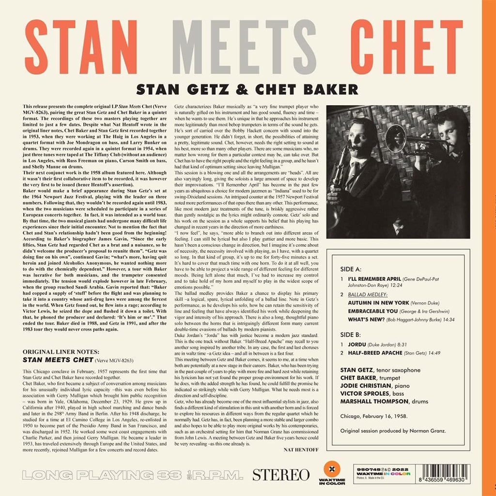 STAN GETZ & CHET BAKER - Stan Meets Chet (Waxtime In Color Edition) - LP - 180g Orange Vinyl