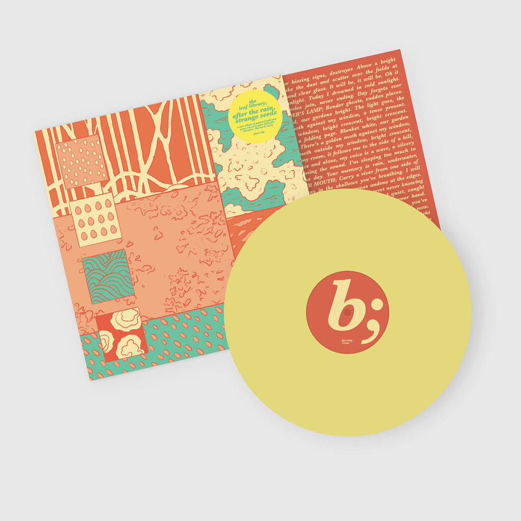 After The Rain, Strange Seeds is the fourth studio album from The Leaf Library, which follows Daylight Versions (2015), The World Is A Bell (2019), About Minerals (2020) and a collaborative LP on Mille Plateaux with Japanese artist Teruyuki Kurihara (Melody Tomb), a double LP of rarities and compilation tracks (Library Music: Volume One - 2022) and a four track EP for electronic label Castles In Space. Band members have been involved with a plethora of solo projects, side-projects and collaborations, most recently Matt, Lewis, Mike from Firestations and singer Marlody in Mirrored Daughters.