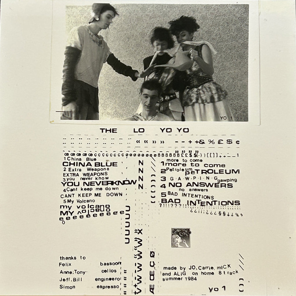 Shortly before their lone studio LP, which was recorded by Charles Bullen of This Heat fame, the band self-recorded a demo tape at home on an eight track reel to reel, reissued here on vinyl for the first time by Concentric Circles. It is a wonder of DIY production with a rich and layered sound that belies their humble means. Although about half of the songs on the demo would wind up being re-recorded for the studio LP, the demo versions are radically different from what is heard on their proper album. There is a feeling of intensity to the demo that was missing from the LP, which had a noticeably cleaner fidelity and more subdued playing. Here the band plays with true force and determination, with Stack’s socialist leaning lyrics taking on an extra sharp bite. Unafraid to show off their skills at writing irresistibly catchy pop songs, things are carried on by Alig’s big bass sound and a barrage of polyrhythmic dueling drums and percussion. The Lo Yo Yo tapped into a truly special sound, perfectly exemplified on these recordings.
