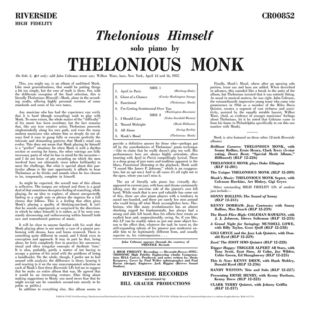 THELONIOUS MONK - Thelonious Himself (Original Jazz Classics Series) - LP - Deluxe 180g Vinyl