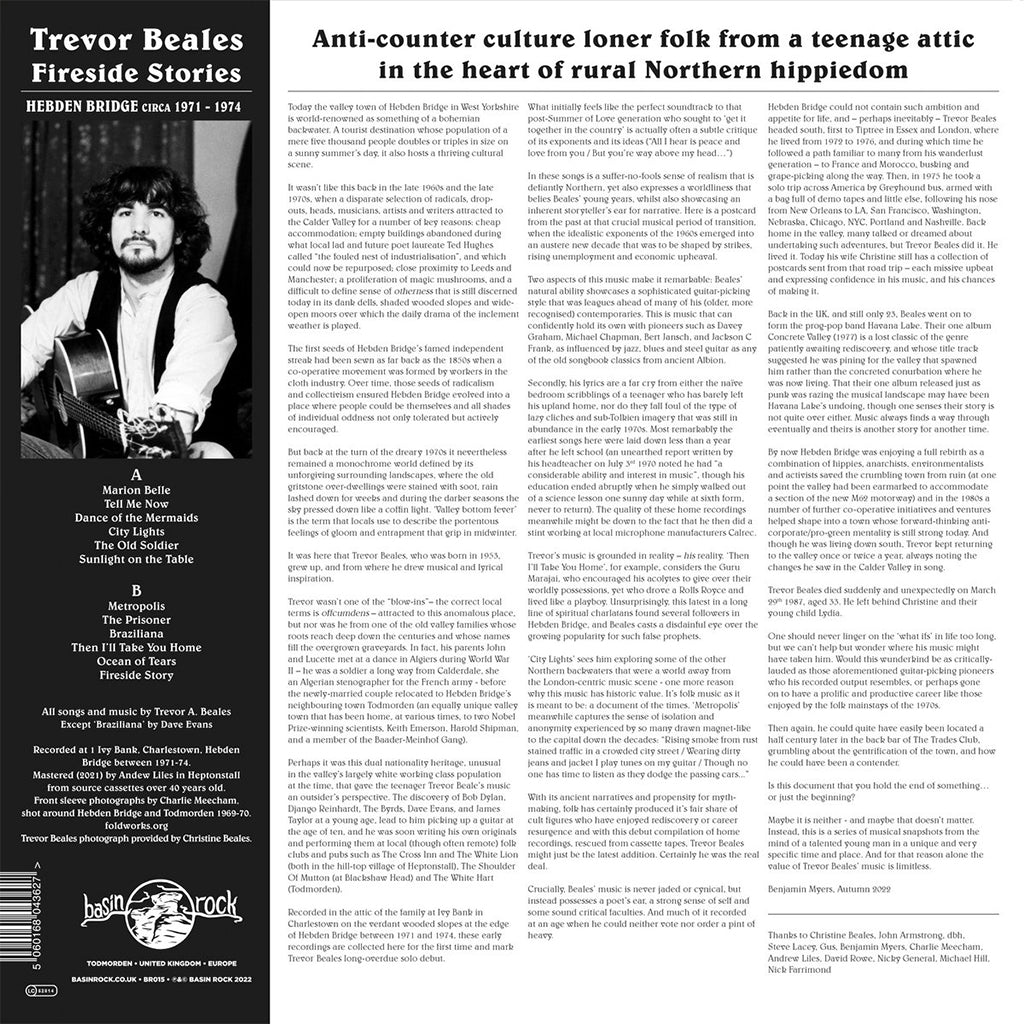 Recorded in the attic of the family home at Ivy Bank in Charlestown on the verdant wooded slopes at the edge of Hebden Bridge between 1971 and 1974, these early recordings are collected here for the first time and mark Trevor Beales long-overdue solo debut.