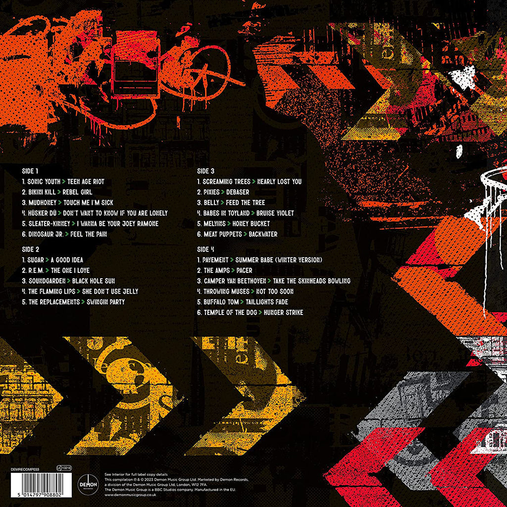 Across the two 140g vinyl, highlights include tracks such as - Sonic Youth ‘Teen Age Riot’, R.E.M. ‘The One I Love’, Soundgarden ‘Black Hole Sun’, Pixies ‘Debaser’, The Flaming Lips ‘She Don’t Use Jelly’, and many more huge tracks.