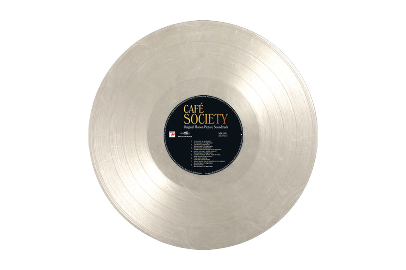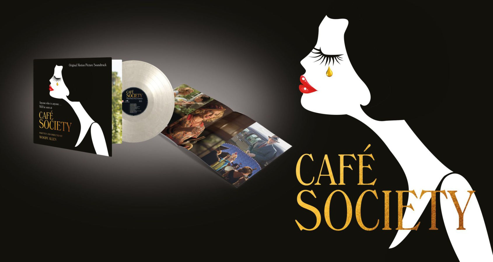 Café Society is available as a limited edition of 1000 individually numbered copies on clear and white marbled vinyl. The package includes a 4-page booklet with pictures from the film.