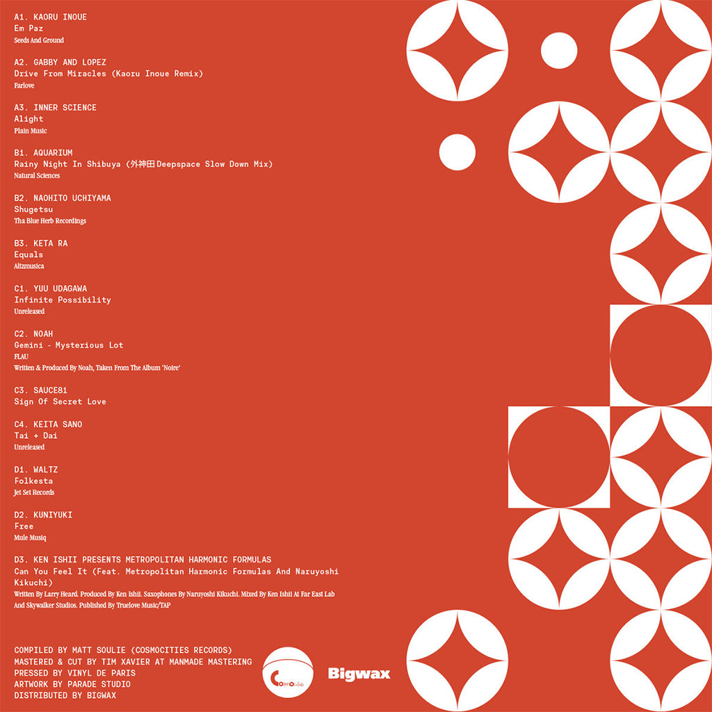 Naohito Uchiyama treats us to a synth-drenched nocturnal ballad with the ‘80s-inflected vibes of ’Shugetsu’, whereas Keta Ra cuts a path of ethereal sublimation via the mischievously fun and bouncy balearic lounge of ‘equals’. Masterly crafted by Yuu Udagawa, ‘Infinite Possibility’ eases us in a realm where weightless pop and low-slung abstract hip-hop combine to further exhilarating effect. All in harp-driven brittleness and velveteen sub-bass stealth, Noah ‘Gemini - Mysterious Lot’ has us drifting to a lavishly orchestrated headspace, laying down an impressive work on textures and arrangements. All in on the sedated drip-tease flex, Sauce81 ’Sign of Secret Love’ is a blast of freaky hedonism, just as ready to cast its hypnotic spell down the sweatbox as it was upon its original release ten years ago.