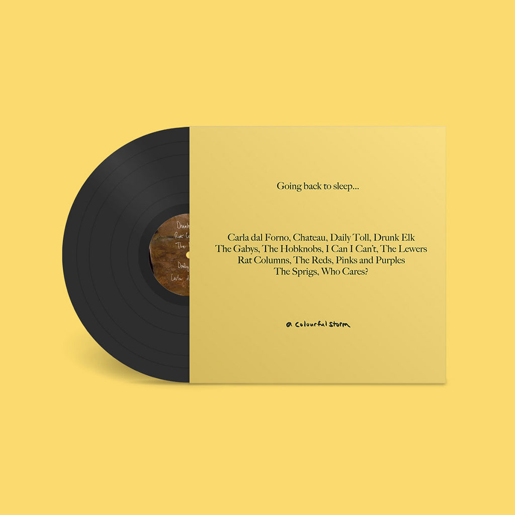 Going back to sleep… a lovingly gathered suite of windswept, heart-bursting contemporary DIY indie-pop and folk including new songs by Carla dal Forno, The Reds, Pinks and Purples, Lewsberg-related duo The Hobknobs and Rat Columns, next to luminaries and newcomers Daily Toll, Who Cares?, The Lewers, The Sprigs, Drunk Elk, I Can I Can't, The Gabys and Chateau.