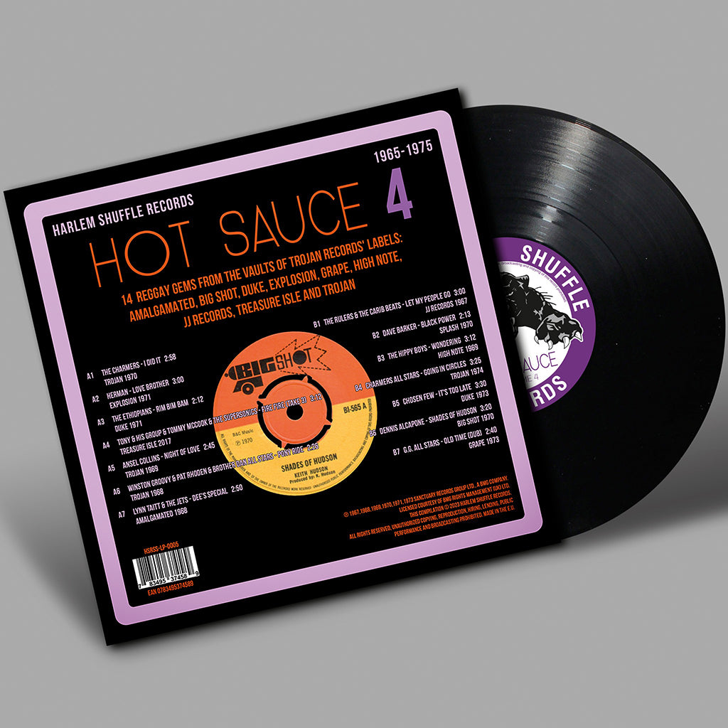 Here is the much anticipated Volume 4 of the HOT SAUCE compilation LPs dedicated to the Trojan related UK labels between 1965 and 1975. HOT SAUCE VOLUME 4 features outstanding original Rocksteady, Boss Reggae and early Reggae (“Reggay”) tracks including rare songs, overlooked gems, hidden treasures and a couple of hits. The record labels showcased on this fourth volume are Amalgamated, Big Shot, Duke, Explosion, Grape, High Note, JJ Records, Treasure Isle and Trojan. The tracks here have been selected according to their musical interest firstly, their rarity, and their complementarity. These tracks are all outstanding tracks, “killer tracks”, there is no “filler” whatsoever.