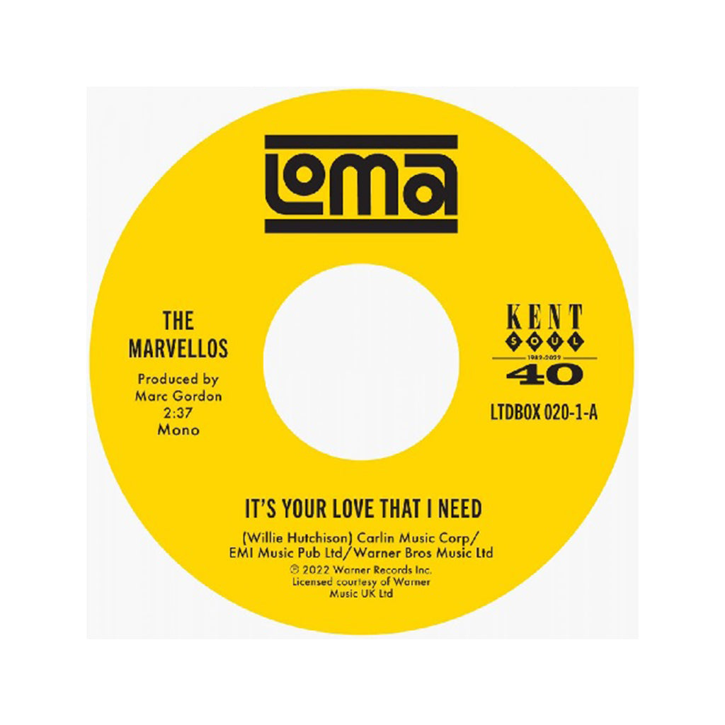 Starting with THE discovery of the soulful ‘20s we present LA soul group the Marvellos, whose ‘It’s Your Love That I Need’ – written by the great Willie Hutch – is a Motownesque dancer whose arrangements and melodies are so stunning we also issued the backing track as its instrumental B-side.
