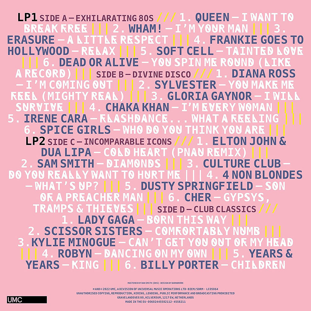 Exclusively across 2LPs, comes a stunning set of classics, anthems & floorfillers from trailblazing icons, artists and allies showcasing the massive contribution Pride artists have made to pop music.