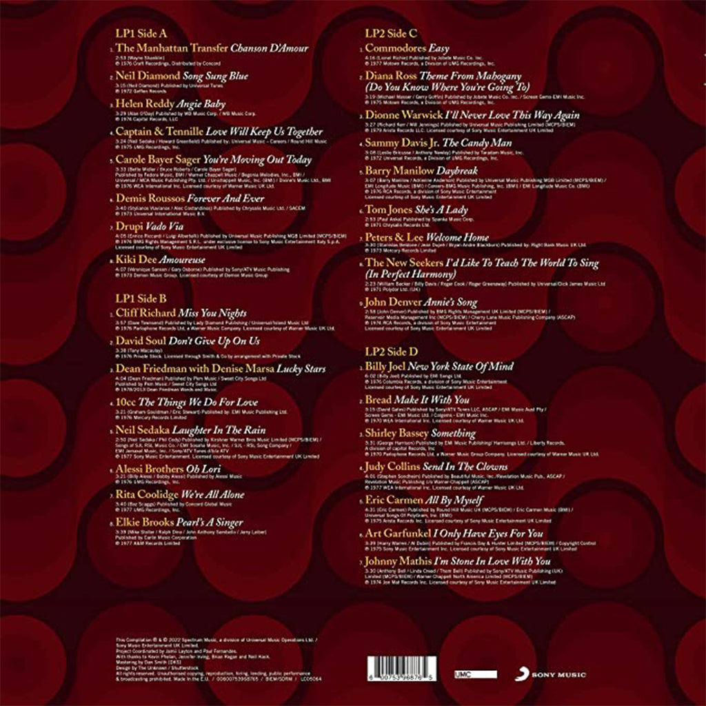 Across 2LPs comes a unique collection of authentic 70s nostalgia. Blissful and relaxing, compiled together onto vinyl is the warm sound of 32 of the decade’s finest works of easy listening pop. Find classic lounge tracks from The Manhattan Transfer, Neil Diamond and Demis Roussos alongside Dionne Warwick, Commodores, Billy Joel and many more.
