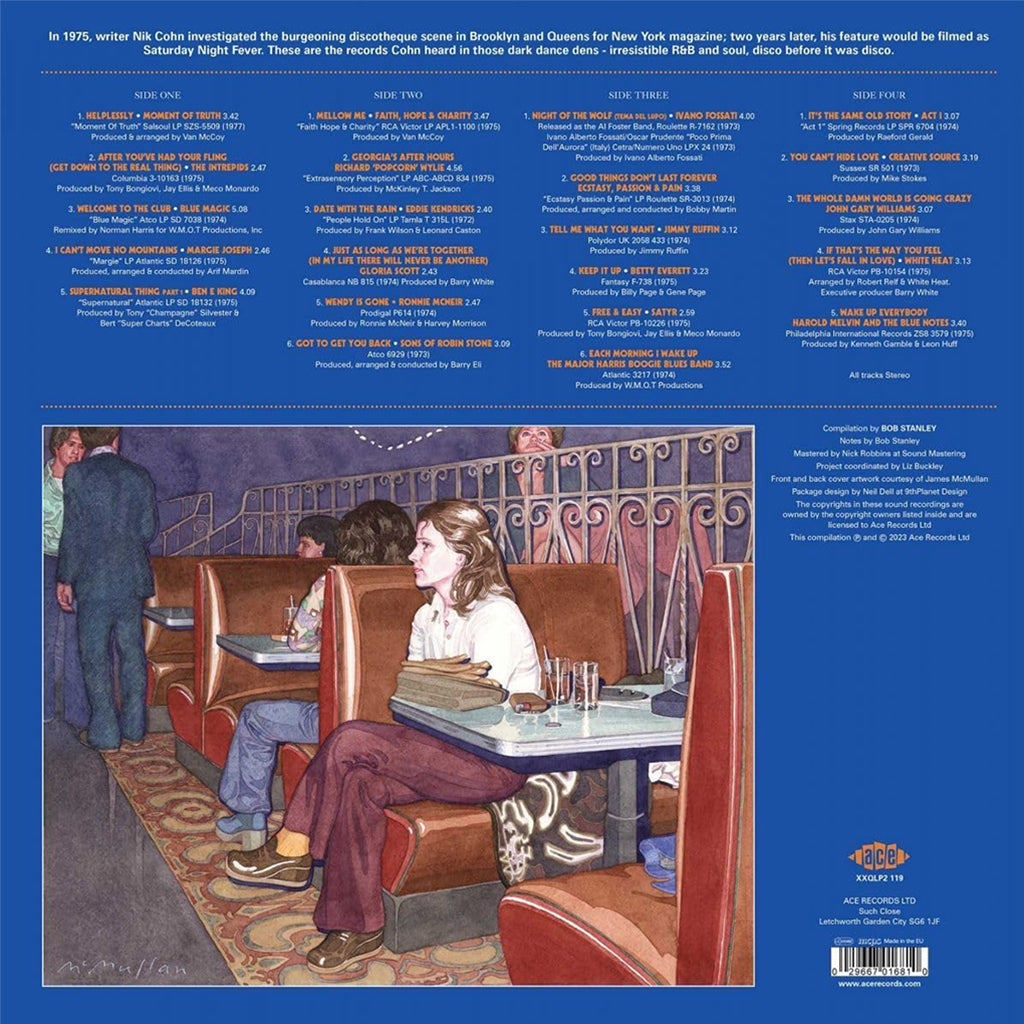 Before there was Saturday Night Fever there was underground disco. DJs across America went out and found the music to play; dancers went out and found the clubs. At this point, in the early seventies, the disco was the venue and not a genre of music. • By the time Nik Cohn’s short story Tribal Rites of the New Saturday Night was published by New York magazine in June 1976, disco was the biggest genre of music on the charts and was about to get bigger still, becoming an all-enveloping cultural phenomenon. Cohn sold the film rights to Robert Stigwood, and his classic club yarn became Saturday Night Fever.
