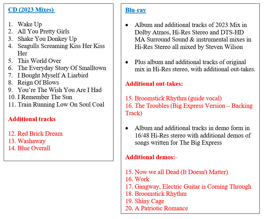 • Album And Additional Tracks In Demo Form In 16/48 Hi-Res Stereo With Additional Demos Of Songs Written For The Big Express